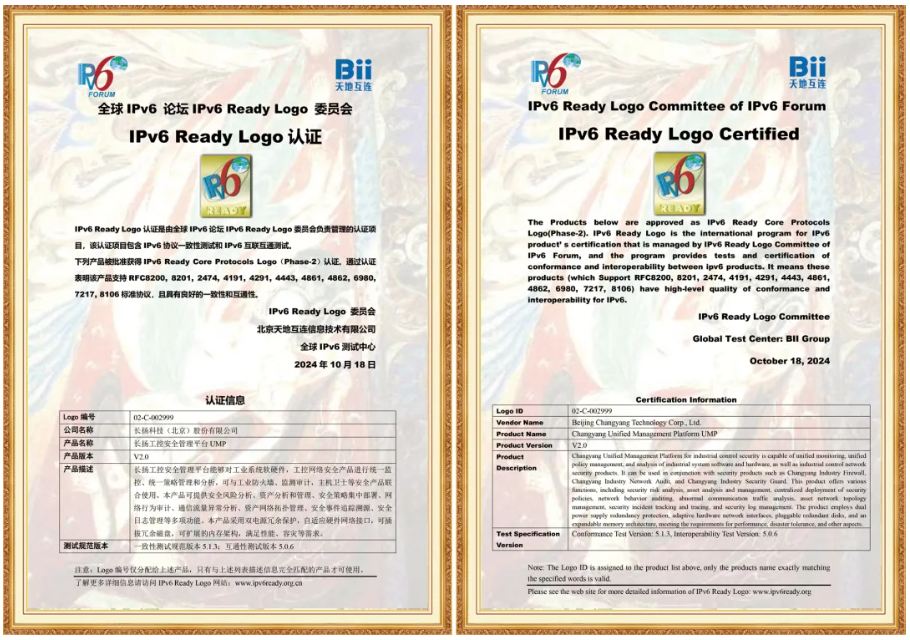 喜报 | 长扬科技多款产品获得IPv6认证,推动工业互联网安全高水平迈进